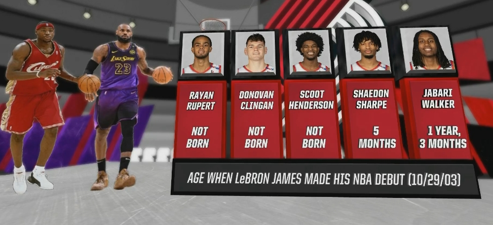 - 转播方晒图:詹姆斯生涯首秀 开拓者三名球员还没出生