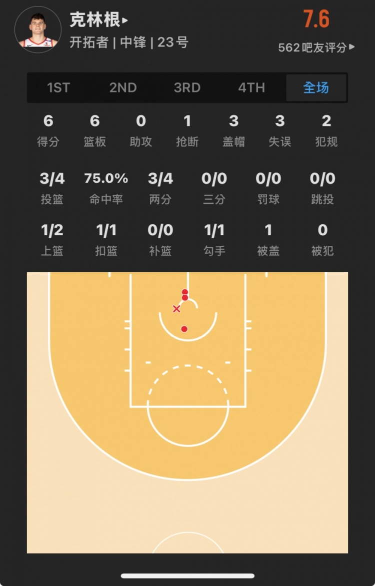 - 菜鸟丨韦尔斯17分 状元两分10中1 卡斯尔10+10 克林根6分6板3帽
