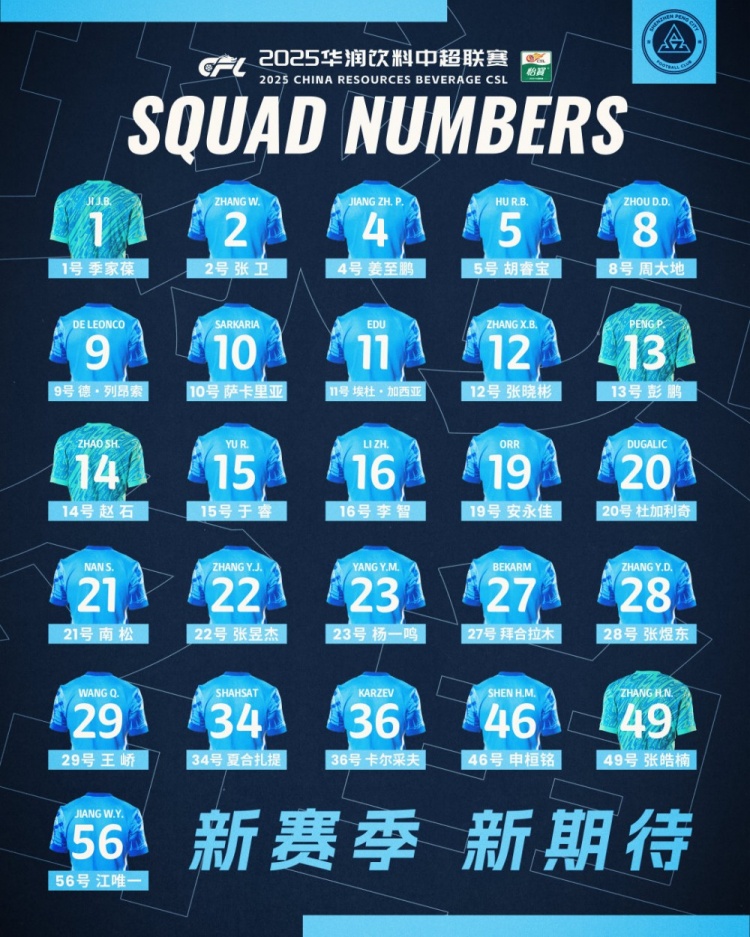 新赛季,新期待!2025华润饮料中超联赛深圳新鹏城一线队名单正式公布!