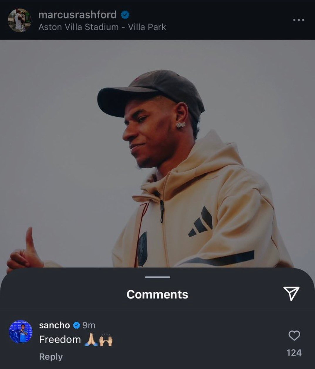 2月11日讯 本轮足总杯比赛中,维拉在主场2-1击败热刺,拉什福德完成维拉生涯首秀,并在赛后更新社媒,桑乔在评论区留言:“自由”。这一行为引发了争议,也遭到了前曼联门将本-福斯特的批评。